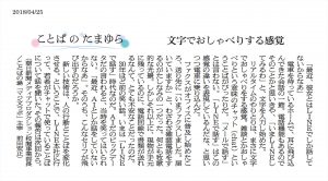 「ことばのたまゆら」第4回は「LINEで話す」。これはマジ文caféの1回目に書いたのですが、改めて新聞用にまとめました。LINE本社にも取材に行ってきました。その詳細は次回から3回に分けて報告します。今回は、その前振りです。