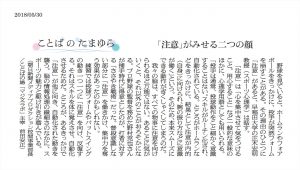 「注意一秒、けが一生」なんていうけれど、その「注意」が、意識を散漫にすることもあるというお話。人の脳は同時に二つ以上のことを処理する能力はないようです。一つに注意が行くと、もう一つに注意が行かない。これはスマホを見ながら道を歩くのと同じことだとか。